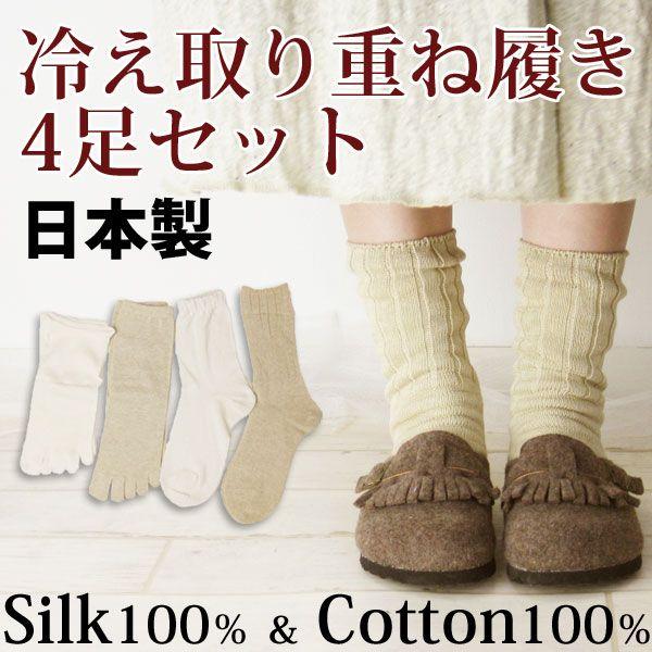 最高級の日本製 4枚重ね履き 男女兼用 冷え取り靴下 4足セット 絹 綿 絹 綿 アパレル 株式会社 和合 問屋 仕入れ 卸 卸売の専門 仕入れならnetsea